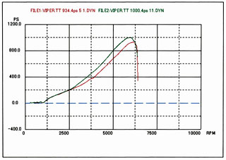 レース用燃料ではなく、通常の市販ハイオクで最大パワーを狙いたいという御希望だったため、ノッキングを出さないように細心の注意を払いつつセッティングを詰めたところ、867.6psに仕上がりました。