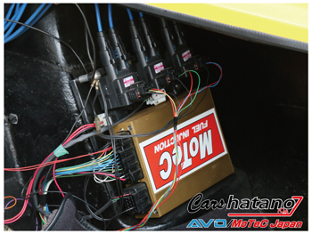 電気系統の不具合で不動車。このまますべての電気系統を一新するには費用が掛かりすぎてしまうため、M800でエンジン関係をすべて制御することになりました。当然、2段階インテークや可変マフラーもM800で統合制御します。