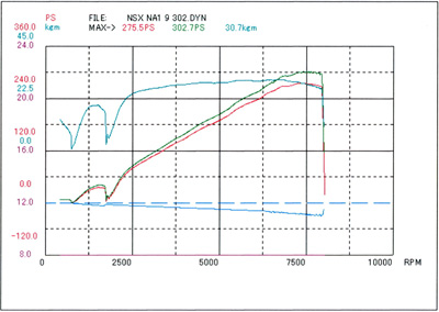 コメント : ホンダエンジンのリビルド&チューニングでは世界でも指折りの技術と精度を誇る、K-TECH様が、無菌室のようなファクトリーで組んだ赤ライン(戸田レーシング製パーツ使用のコンプリート)エンジンを搭載したNSXです。滑るように回るフィーリングから、精密に組んだエンジンの素晴らしさが体感できましたが、まさかの高出力に脱帽です。