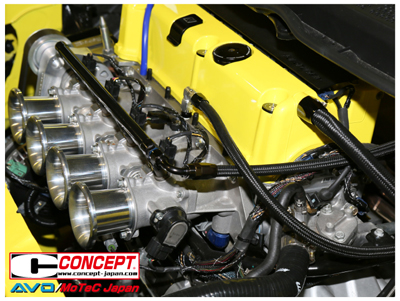 ステアリングに装着されたスイッチでエンジン回転数4,500rpm~8,250rpmの間で更にガスが噴射されます(Stage2)。上記仕様で更に+50ps