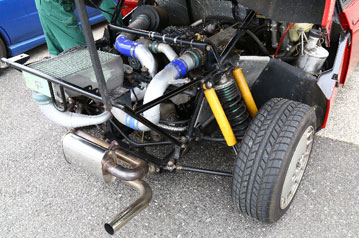 コメント : ストリート仕様のイプシロンですが、1200ccエンジンを精密オーバーホールし、高圧縮ピストンとハイカムを組んでいます。4連スロットルをスライドバルブ式のFCRキャブレターで流用製作し、ワンオフのエアクリーナー内蔵式カーボン製インダクションBOXで、外気を導入しています。エンジンは7500rpmまで気持ちよく伸び、等長タコ足のサウンドは、驚くほどスポーティです。【詳細記事】