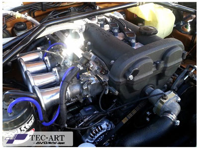 コメント : ノーマルの1800ccエンジンですが、4連スロットルと等長タコ足で吸排気チューンされています。M84をスロットル制御+圧力補正に設定することで、アクセルペダルに俊敏に反応するレスポンスと、低回転から高回転まで、どこでどのような踏み方をしてもスムーズに加速するフレキシブルな乗りやすさに仕上がりました。