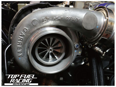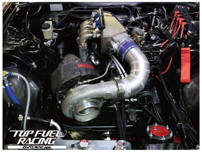 ドラッグレース仕様で、燃料はメタノール。メタノールはオクタン価112で、気化熱がガソリンの約2.5~3倍もあります。注射の前にアルコール消毒で冷たく感じた経験があると思いますが、あれこそ気化で熱が奪われた瞬間です。メタノールは同じ出力ならガソリンと比較して約2倍の噴射量が必要になりますが、この2倍の噴射量が気化することで、インタークーラーが無くても問題にならないほど吸気を冷却するのです。