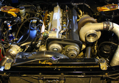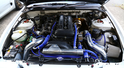 交換してあるパーツは、S14タービン、インタークーラー、燃料ポンプ、600cc×4インジェクターなど。