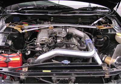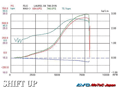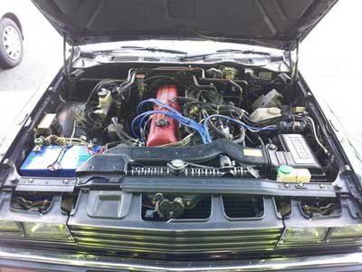 タービン、カム、インジェクターを交換してあり、オーナー様は朝3時に家を出て当社までセッティングに来て下さいました。1.5kg-mのトルクが4800rpmで出るため、峠では相当楽しめる仕様になっていると思います。このローレルは、その後ステップアップを重ねて、最高速仕様になりました。