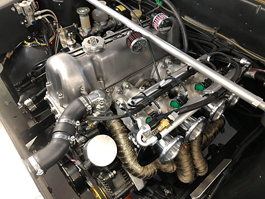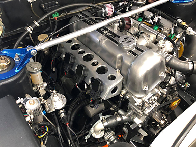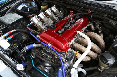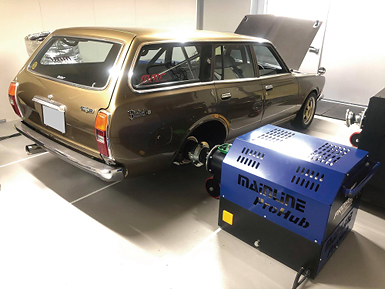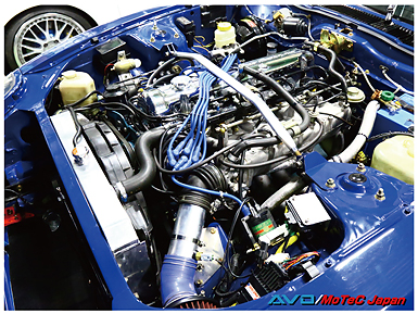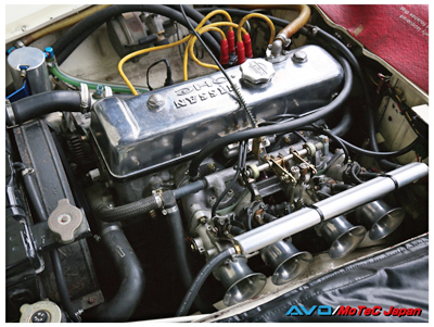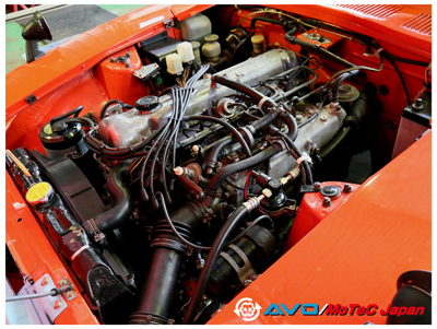 コメント :ていねいにオーバーホールされたL型エンジンです。純正サージタンクのインジェクション機構を使用してモーテックで制御しました。当時のECUとは違い、始動性や乗りやすさが驚くほど良くなると同時に、力強さや燃費も向上しました。実走セッティングのみでしたので、パワーは未計測です。