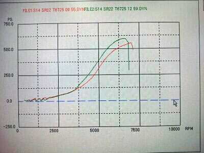 ピークを650psとし、パワーの立ち上がり、主に5000rpm~のパワーに注目してください。