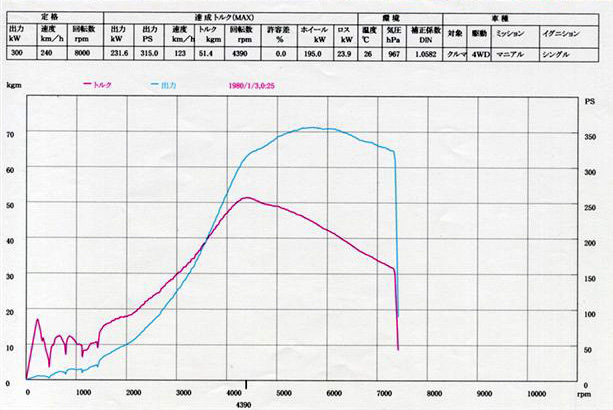 ※パワーグラフの上に記入されている315psは、最大トルクが発生する4400rpm時のパワーです。