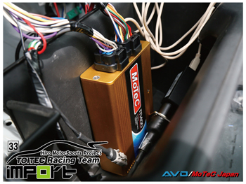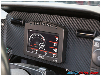 コメント : MoTeC ECUとカラーディスプレイロガーC125の、配線作業、本体取り付け、セッティングを、すべて個人でされているプライベーター様です。エンジンの吹けも良く、吸気温度が上昇すると自動でインタークーラーの電動ファンが作動するなど、アクセサリーアウトプットも使いこなしています。今後はピットレーンリミッターを追加するなどのステップアップを目指すとお話しされていました。【詳細記事】