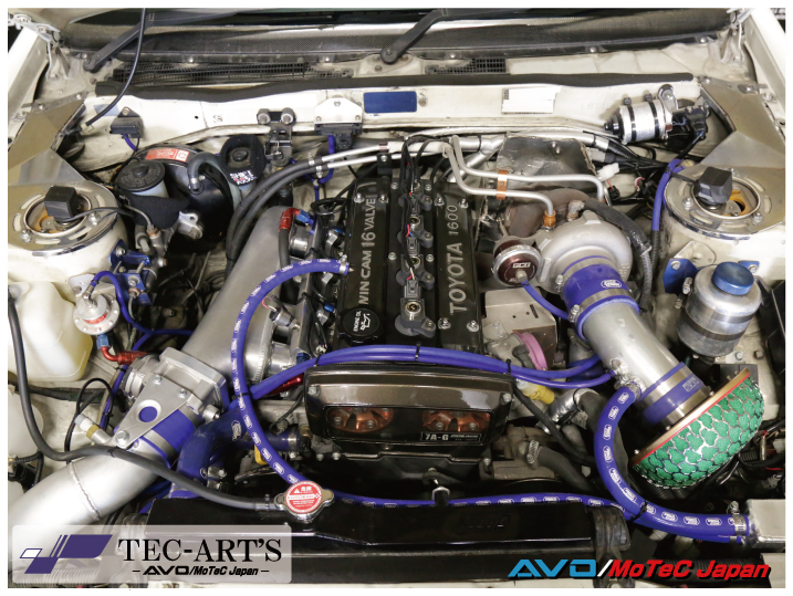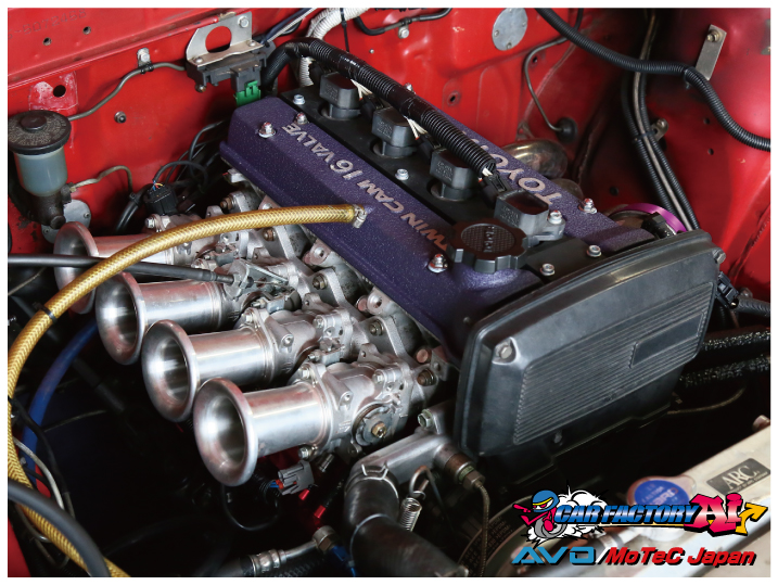 コメント : フルチューン4A-Gを搭載した、ストリート&サーキット仕様です。モーテックM84で制御するにあたって、デスビを廃止してダイレクトイグニッション化してあります。