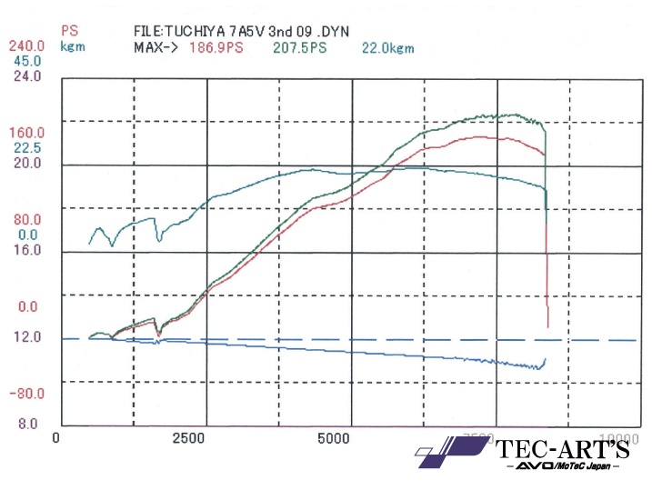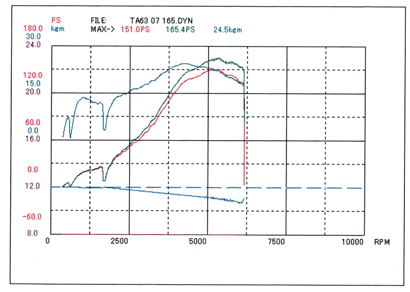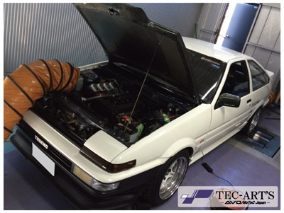 コメント : テックアート様の製作する最強スペックの7A-Gです。過去に製作した7A-Gと比較して、パワーやトルクの数字は同レベルなのですが、6000rpm前後にあったトルクとパワーの谷が解消されています。秘密は、さらに低振動化に注力したクランクシャフトと、クランクに合わせた各部のクリアランス再設定にあるそうです! 【詳細記事】