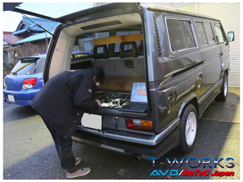 コメント : VWのワンボックスに、フラット6を搭載している、日本に数台しかない車だそうです。純正ECUの不調で困られていて、モーテックM4制御に変更となりました。