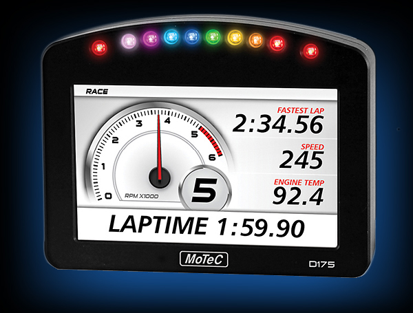 D175は、各種MoTeCディスプレイロガーと接続して使用する5インチのサブディスプレイです。